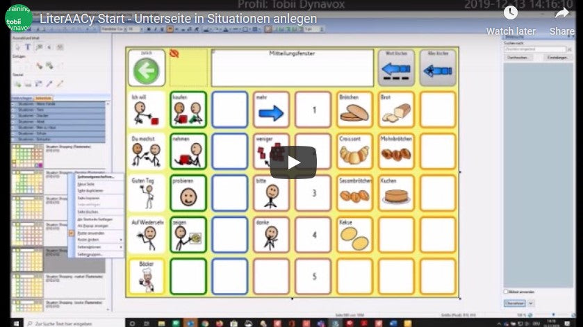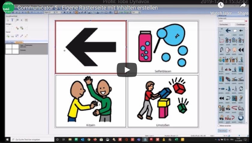 In diesem Video wird gezeigt, wie man in Tobii Dynavox Communicator 5 eigene Rasterseiten anlegen kann.