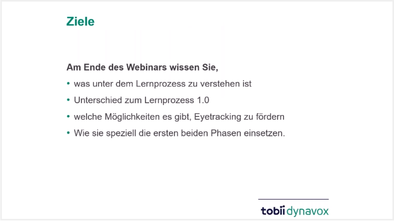 Dieses kostenlose Webinar vermittelt Informationen über die innovative Möglichkeit, mittels Augensteuerungsgeräte von Tobii Dynavox zu erfassen.