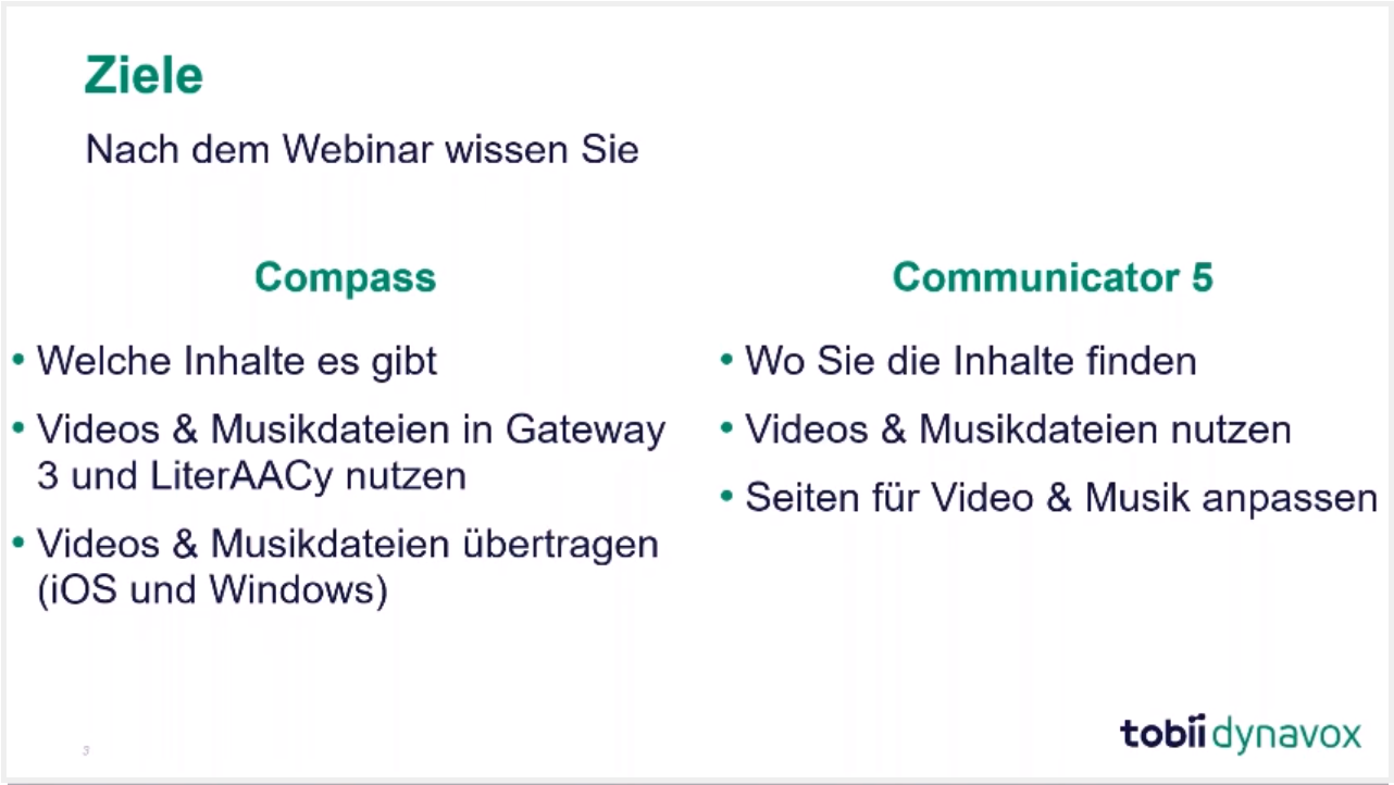 Lernen Sie in dieser Tobii Dynavox Hörsaal Veranstaltung die Möglichkeiten zur Nutzung von Multimediadateien wie Musik und Videos kennen.