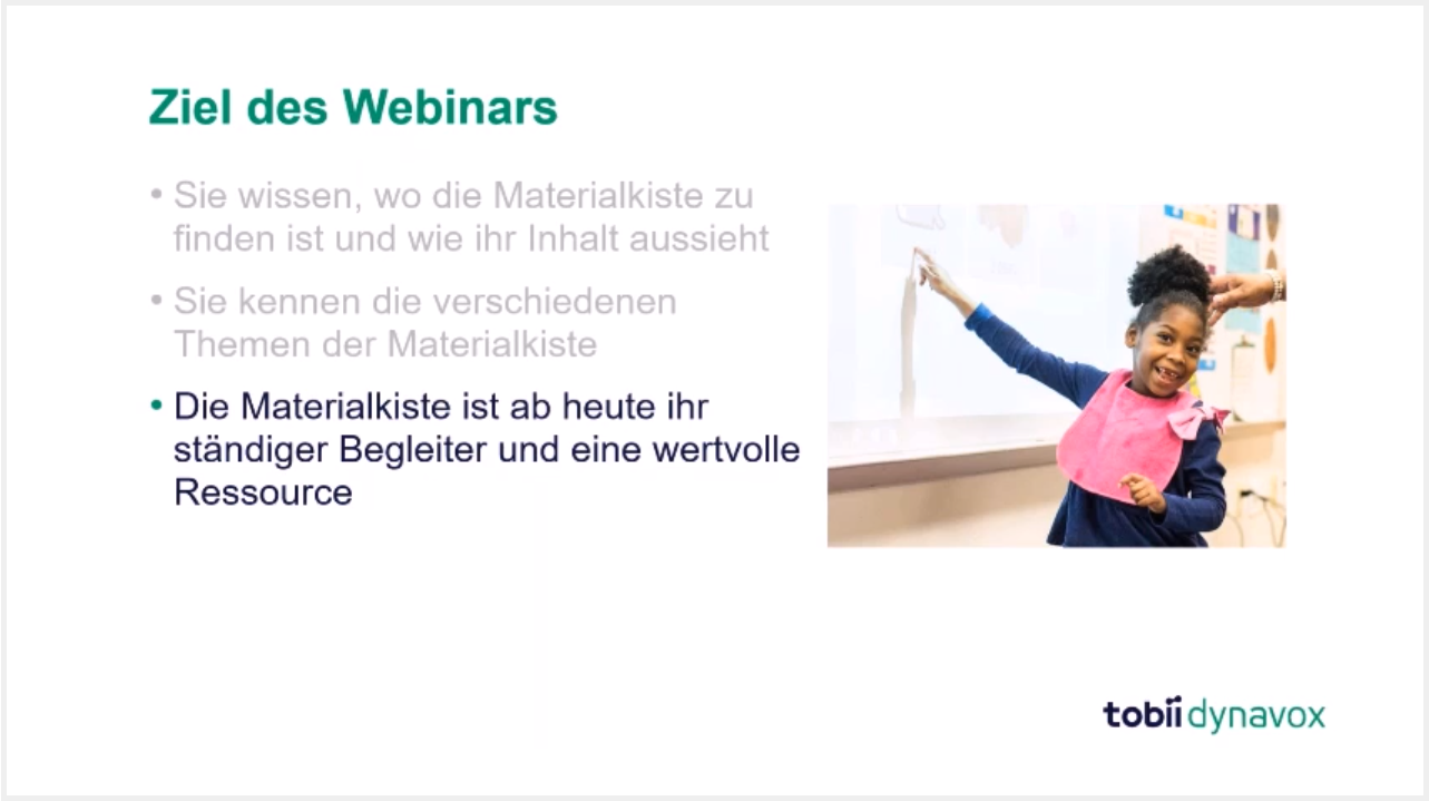 In dieser Tobii Dynavox Hörsaal Veranstaltung erhalten Sie einen Überblick über unsere Materialkiste.