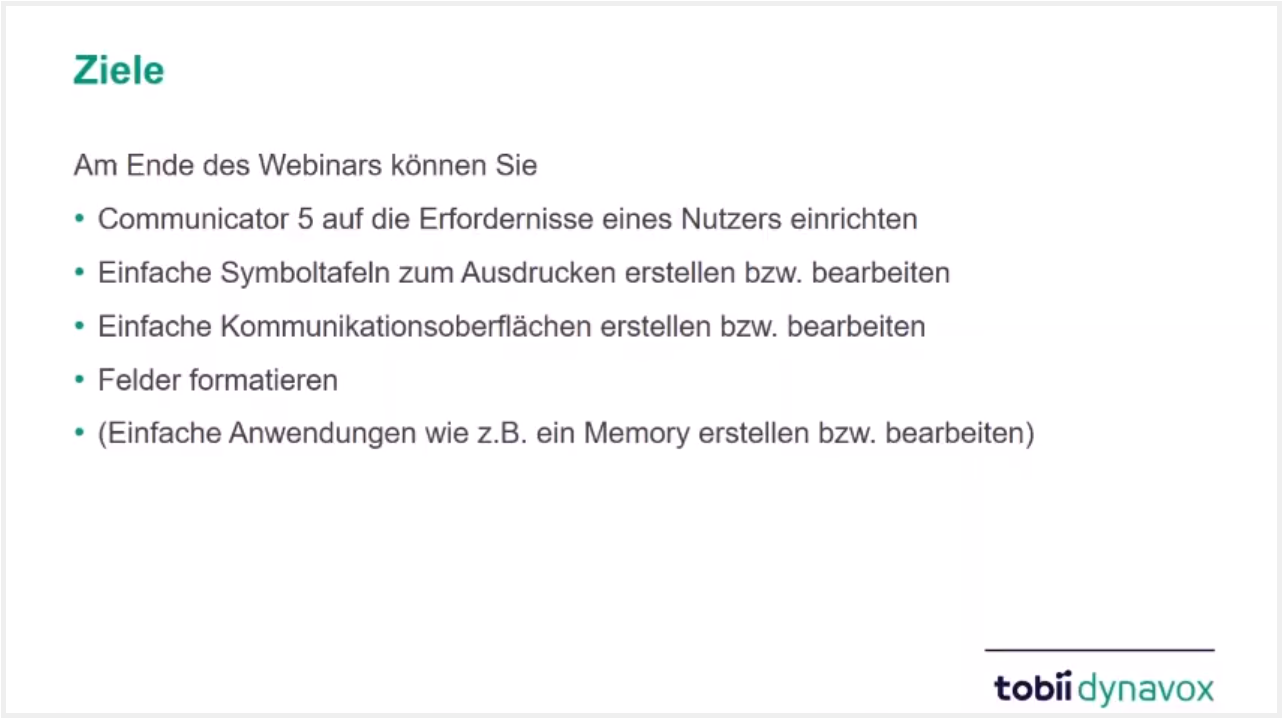 Lernen Sie in dieser Tobii Dynavox Hörsaal Veranstaltung die Kommunikationssoftware Communicator 5 kennen.